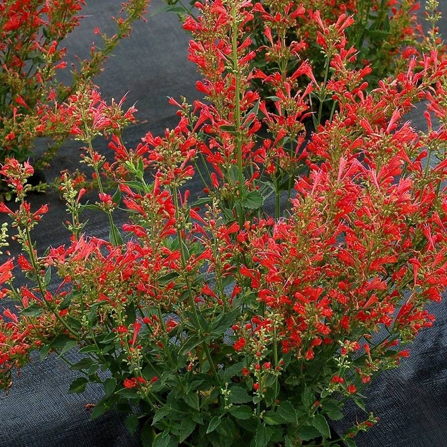 Agastache 'Kudos Red' is a garden centerpiece with its vibrant red flower spikes. These thick, full, rich, and vibrant colors bloom from late spring to autumn, resembling strings of small torches in the sun. The plant grows 18-22 inches tall, has a compact, sturdy form, and sturdy, durable stems. Its lustrous, emerald green leaves emit a light fragrance that naturally repels some pests. Its adaptability allows it to withstand both summer heat and mild drought, making it easy to maintain. It's suitable for planting in borders, at garden entrances, or in containers, creating a striking visual contrast with greenery. Its nectar-rich flowers often attract hummingbirds, adding a dynamic aesthetic to any garden.