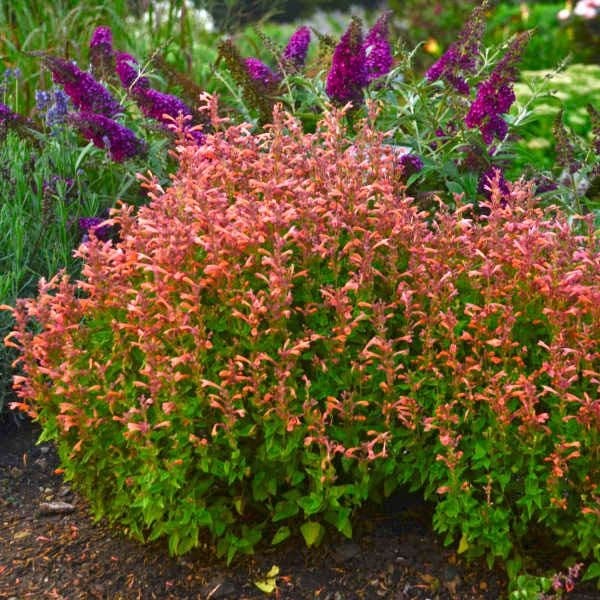 This hyssop plant's distinctive mango-orange blossoms create a striking focal point in the garden. Its plump spikes bloom from summer to early autumn, their petals dancing like flames, contrasting with the deep green, serrated leaves for a striking visual dimension. The compact plant (24-30 inches tall) maintains its upright position with even branching, requiring no support. A light touch on the leaves releases a refreshing fragrance that naturally repels some pests. It is drought- and heat-tolerant, maintaining its plump, unwilted flower spikes even in summer's high temperatures and low rainfall. Whether used as a centerpiece in a border or planted alone on a balcony, its vibrant color brightens the space while attracting hummingbirds and butterflies, adding a vibrant touch to the garden.