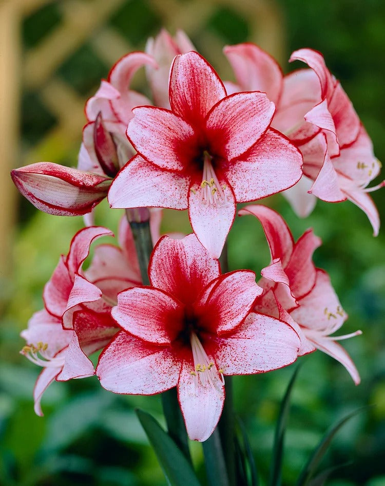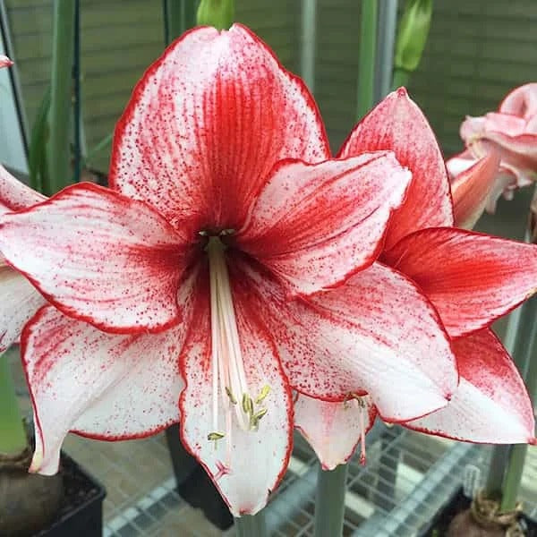 Amaryllis 'Charisma' (Hippeastrum), a premium variety of amaryllis known for its "charming" character, has become a popular ornamental plant for its unique color and flower shape. Its white petals striped with red create a rich, layered color palette, adding to the exquisite flower shape. Each flower is approximately 10-12 cm in diameter and has a full, rounded shape. The flowers bloom sequentially, lasting 5-7 weeks, offering a long viewing period. It is easy to care for and suitable for people of all levels of experience. Simply provide ample diffused light and avoid waterlogging in the soil for healthy growth.