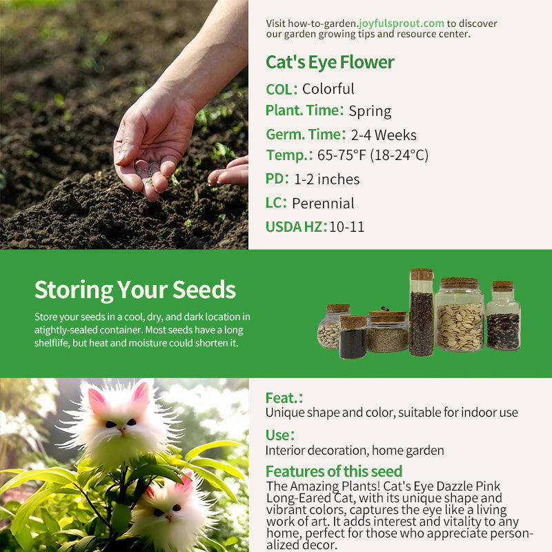 🔆Lighting: Cat's eye flower likes plenty of sunlight, and it is best to place it in a place where it can get at least 6 hours of sunlight every day. When the temperature is high in summer, it can be moved to a semi-shady place to avoid direct sunlight.