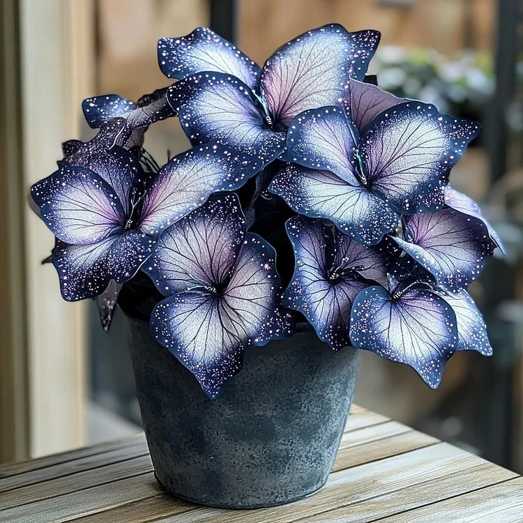 In dim light, Black and Purple Begonia 'Moonlight Butterfly' reveals its unique charm, its deep black and purple leaves intertwined like night magic. Its leaves gently sway in the breeze, lending a mysterious and elegant aura. More than just a plant, it's a work of art, adding endless creativity and inspiration to any home. Visitors to my home are captivated by its beauty and can't help but approach to admire it. Like a quiet guardian, Black and Purple Begonia quietly accompanies every heartwarming moment and becomes an indispensable part of life.