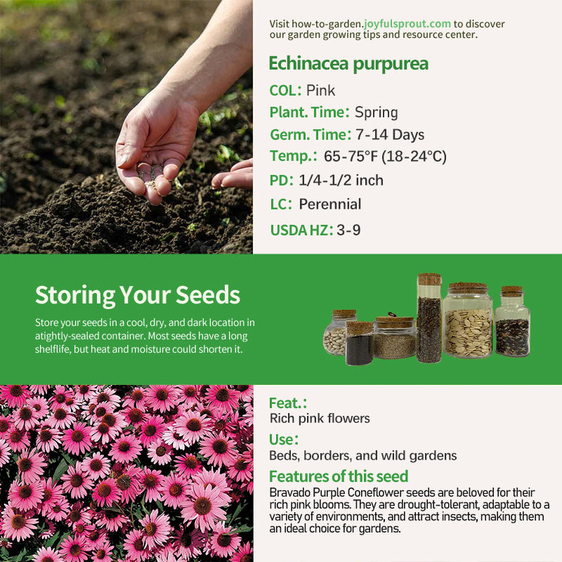 On sunny summer days, Bravado Purple Coneflower captivates everyone with its rich pink blossoms. Each flower resembles a pink flame burning in the sun, radiating vitality and vibrancy. Sow these seeds and watch them flourish in the sun, becoming a vibrant insect magnet. Bravado Purple Coneflower's blooms are not only beautiful but also drought-tolerant and adaptable, making them suitable for a variety of gardening environments. Whether in beds, borders, or even in the wild, they will add a touch of vibrant color to your garden. Imagine strolling through your garden surrounded by these vibrant purple flowers, feeling the charm of nature. Bravado Purple Coneflower will bring a touch of color and joy to your life.