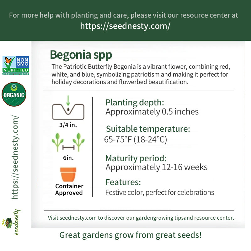 In a garden filled with a festive atmosphere, the Butterfly Begonia Blue Red White, with its vibrant red, white, and blue blooms, symbolizes unity and patriotism. Its blossoms resemble fluttering national flags, inviting passersby to pause and admire. The gentle breeze sways the petals, as if celebrating freedom and hope. These flowers not only add color to the flowerbed but also enhance the festive atmosphere, filling everyone who enters the garden with a strong sense of patriotism and joy.