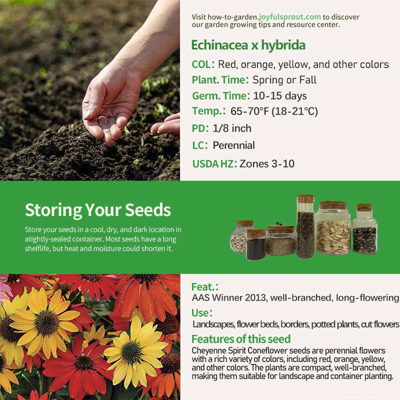 In a garden, a gardener was meticulously planning a new planting when he stumbled upon Cheyenne Spirit Coneflower seeds. Soon after planting, the seeds sprouted, their tender green buds struggling to break through the soil. Over time, the plants grew and branched more and more. When they bloomed, the flowers, red like fire, orange like clouds, bloomed in a variety of colors, transforming the garden into a fairytale world and attracting butterflies and bees. The gardener was overjoyed, feeling that these miraculous seeds had brought endless vitality to his garden.