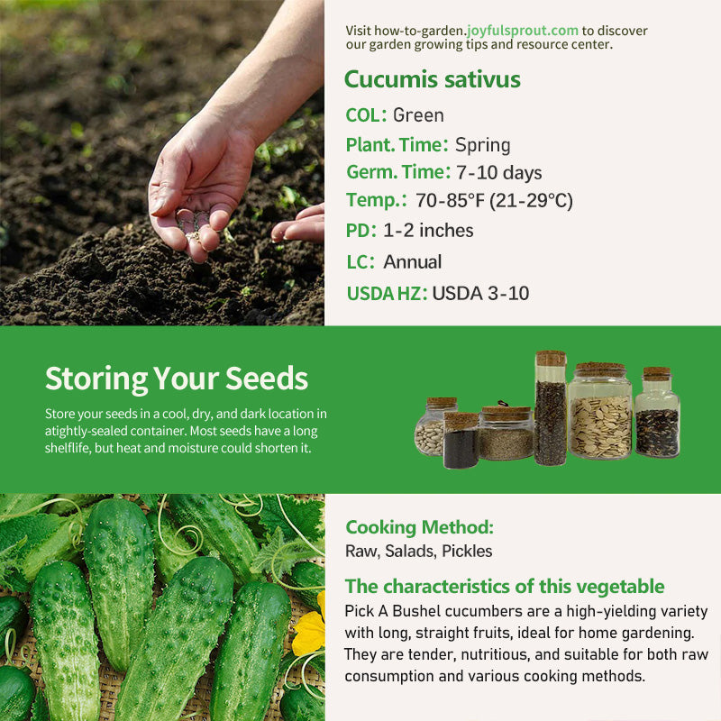 Pick A Bushel cucumbers are a high-yielding variety with long, straight fruits, ideal for home gardening. They are tender, nutritious, and suitable for both raw consumption and various cooking methods.