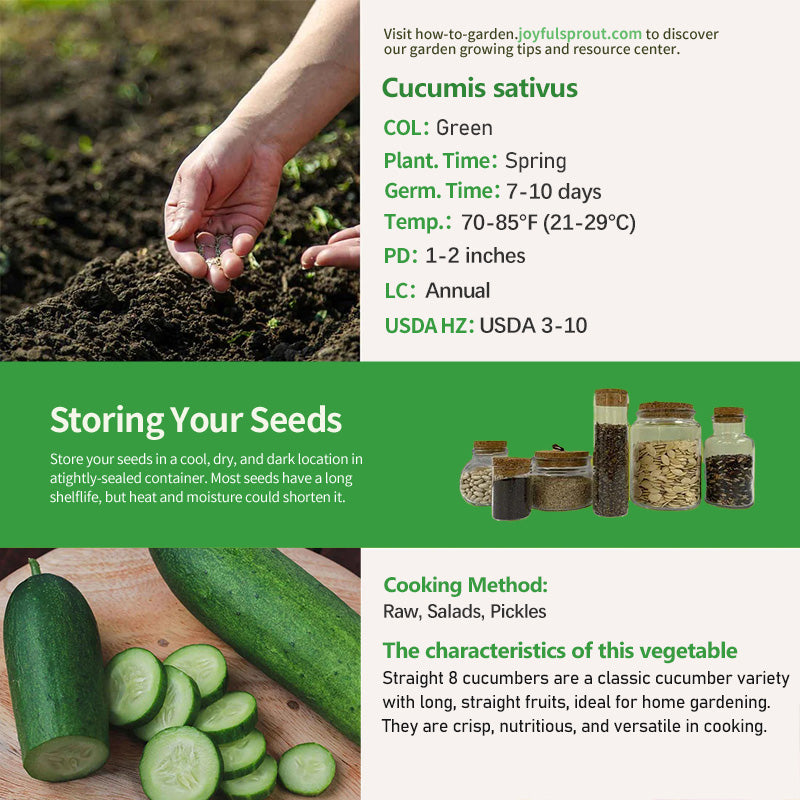 Straight 8 cucumbers are a classic cucumber variety with long, straight fruits, ideal for home gardening. They are crisp, nutritious, and versatile in cooking.