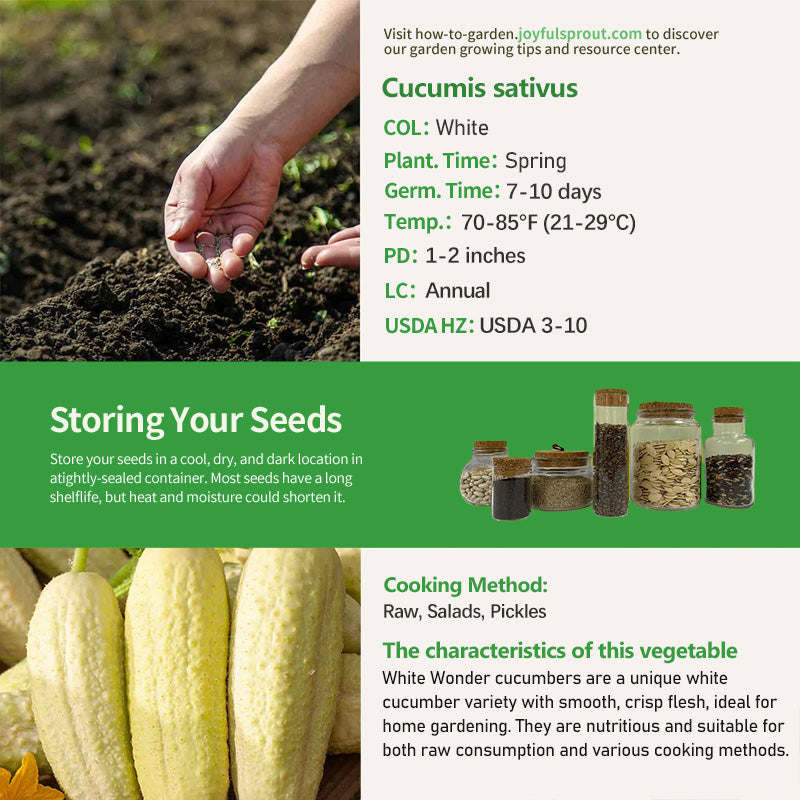 White Wonder cucumbers are a unique white cucumber variety with smooth, crisp flesh, ideal for home gardening. They are nutritious and suitable for both raw consumption and various cooking methods.