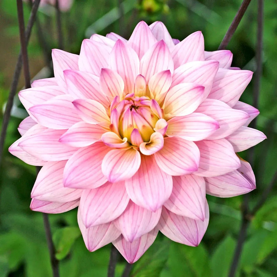 Karma Prospero is a prime example of Dutch professional cut flower breeding. Its 5.5-inch pink double flowers are layered, punctuated by golden stamens like stars. Its bamboo-like stems support the flowers, maintaining their graceful appearance in wind and rain, and they bloom continuously for over 120 days from midsummer to late autumn. As a perennial bulb, it can overwinter naturally in USDA zones 8-10 and can be bulbed for storage in northern regions. Reaching a height of 36 inches, it is a perfect backdrop for flower beds or focal points. Cuttings stay vibrant for over 10 days in water, making it an ideal choice for wedding bouquets and table decorations.