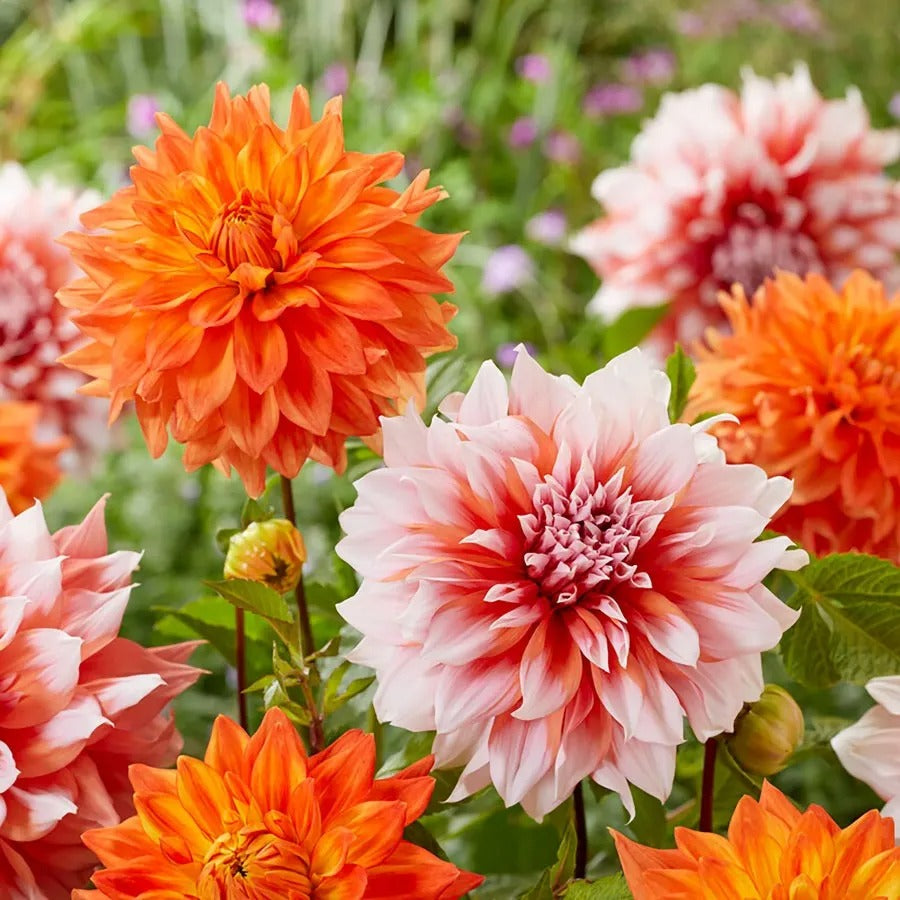 Splendid Festival Blend is designed for celebrations. Its 6-8 inch double flowers, red like fireworks, white like first snow, and orange like amber, bloom densely on 30-36 inch stems, creating a vibrant flower wall from late summer to autumn. This combination of varieties, carefully selected by Dutch breeders, ensures uniform flower shape (double decorative flowers) and a consistent blooming period. It is also highly resistant to stress and maintains its full bloom even in hot and rainy regions. It is ideal for large-scale events such as National Day and weddings. Cut branches can be placed in a large vase to create a lively atmosphere without any fuss, making it a worry-free choice for holiday decorations.