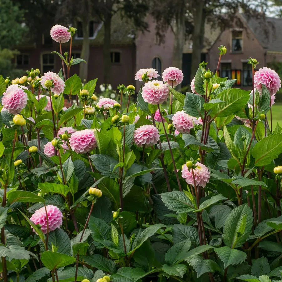 The pale pink pompom flowers of Wizard of Oz resemble magical props from a fairy tale, with tiered 3-inch spherical petals and yellow stamens that shimmer like stardust in the sun. The plant stands 32 inches tall, and its sturdy, bamboo-like stems support the flowers, maintaining their elegant appearance in wind and rain. A classic Dutch cut flower, it blooms continuously for over 120 days from midsummer to frost, overwinters naturally in USDA zones 8-10, and can be pelleted for storage in northern regions. Cuttings stay vibrant for 10 days in water, making them ideal for wedding bouquets and table decorations. Its compact size also makes it suitable for borders or rock gardens, creating a refreshing contrast when paired with white petunias.