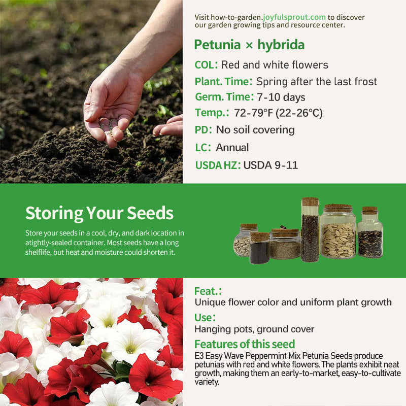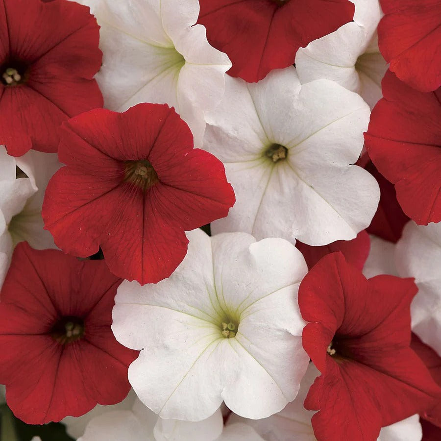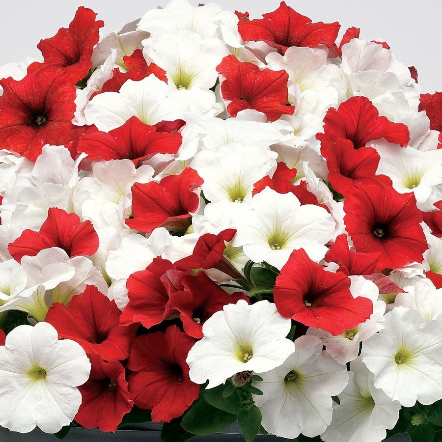 E3 Easy Wave Peppermint Mix Petunia Seeds produce plants with striking flowers. The flowers exhibit a unique blend of red and white, making them stand out among other flowers. The plants exhibit excellent growth characteristics and are known as "Extra Easy," allowing them to successfully grow with lower concentrations of plant growth regulators (PGRs) than standard Easy Wave varieties, reducing both the difficulty and cost of cultivation. The plants exhibit neat, uniform structure and vigorous growth, maintaining a full, lush appearance for extended periods at retail.