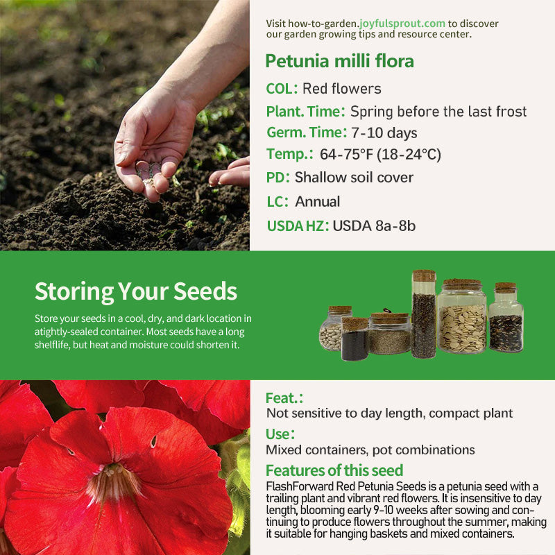 Easy Wave Berry Velour Petunia Seeds produce petunias with a unique velvety texture and a rich, lustrous berry-red color. These plants have both a clumping and trailing habit, reaching heights of 6-12 inches and widths up to 39 inches. They grow quickly and branch prolifically, quickly filling containers or covering the ground. Their blooms last from early summer to early fall, with abundant blooms, and new flowers continuously emerging from the center and tips of the stems, ensuring a constant fresh appearance. They are highly adaptable, tolerant of both heat and some cold, and thrive in full sun. They are often used in window boxes and hanging baskets to create a dazzling waterfall of flowers, or planted in borders to create a vibrant, vibrant landscape.