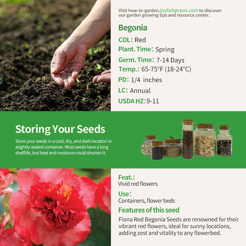 On a bright afternoon, the vibrant crimson blossoms of Fiona Red Begonia Seeds illuminate the garden like a flame. Each blossom gleams in the sunlight, captivating countless eyes. Planting these begonia seeds promises a continuous flow of beauty, a garden perpetually filled with color and vitality. With its intense color and unique charm, Fiona™ will become a focal point in any flowerbed. Whether sharing with family and friends or enjoying it alone, Fiona™ Red Begonias will add zest and vitality to your life. Every time you see these flowers, you'll feel a surge of joy and contentment, as if you're immersed in the embrace of nature.