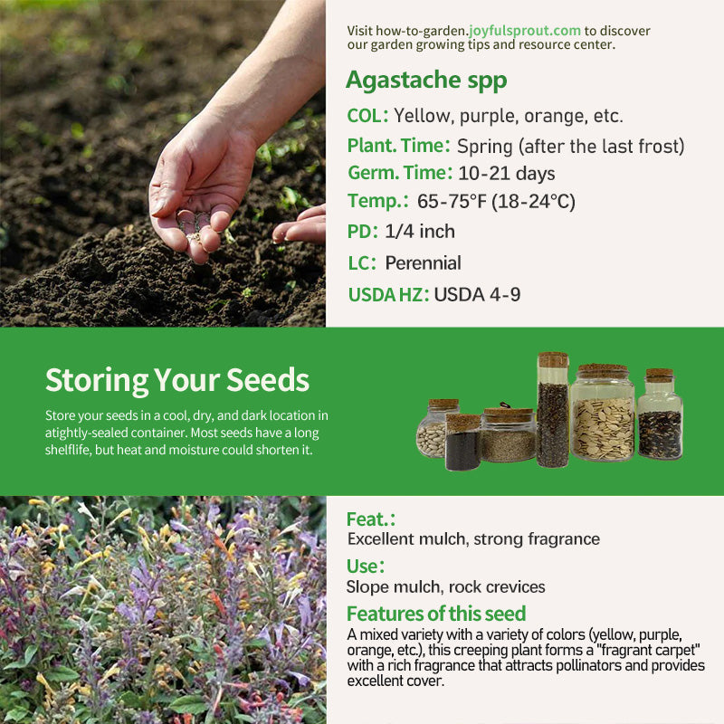 This seed mix is ideal for creating an "aromatic ground cover." It contains hummingbird mint varieties with a variety of colors, including yellow, purple, and orange. After sowing, it grows prostrate, interweaving its branches and leaves like a green carpet. When in bloom, the entire ground cover is covered with colorful flower spikes, resembling an overturned palette. The plant's rich fragrance repels insects and attracts pollinators such as bees and butterflies, creating an "aromatic ecosystem." This plant provides excellent cover (a single plant can spread 18-24 inches) and effectively suppresses weeds. It's suitable for planting on slopes, in rock crevices, or along the edges of flower beds. It requires no frequent mowing to maintain a neat and tidy appearance, making it easy for even novice gardeners to create a low-maintenance, colorful, and fragrant landscape.