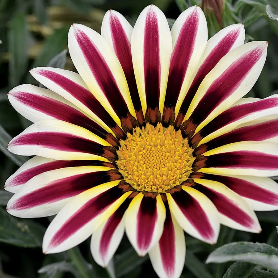 This chrysanthemum, with its silvery-gray lanceolate leaves, grows from seeds into 8-10-inch-tall plants. Its white petals are striped with a red flame stripe and a dark band at the throat, and its flowers are 3.5 inches in diameter. It is adaptable to USDA zones 8-10 and blooms from spring to summer in full sun. Germination occurs 3-5 days after sowing (at 70-75°F), and no soil is needed. Its silvery leaves reflect light, reducing evaporation, and it tolerates drought and infertility. Its uniform, low-maintenance plant is suitable for rock gardens and containers. It can be paired with purple lavender to create a cool-toned landscape. Its evergreen leaves enhance its winter beauty.