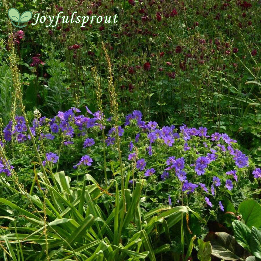 Geranium Johnson's Blue is a popular garden plant. As a hardy perennial, it forms dense clumps, reaching a height of 12-18 inches and spreading to 24-30 inches wide. Its elegant, dark green leaves are basal, each with subdivided lobes and serrated edges. Its purple flowers, about 2 inches in diameter, appear in large numbers at the top of the plant from late spring to midsummer, creating a beautiful sea of purple. It is suitable for adding dimension to flower bed borders or growing naturally in shaded woodland gardens as a groundcover. It is also attractive to butterflies and has some deer and rabbit resistance.