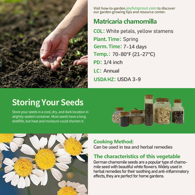 German chamomile seeds are a classic and widely popular herb. Imagine planting these beautiful white flowers in your garden, their fresh fragrance attracting bees and butterflies. Chamomile is not only beautiful but also offers numerous health benefits. Rich in antioxidants and anti-inflammatory components, it can relieve stress, improve sleep quality, and alleviate indigestion. Imagine brewing a fragrant cup of tea with fresh chamomile petals and enjoying a warm and relaxing feeling. German chamomile seeds not only beautify your garden but also bring health and tranquility to your home, allowing you to find peace in your busy life.