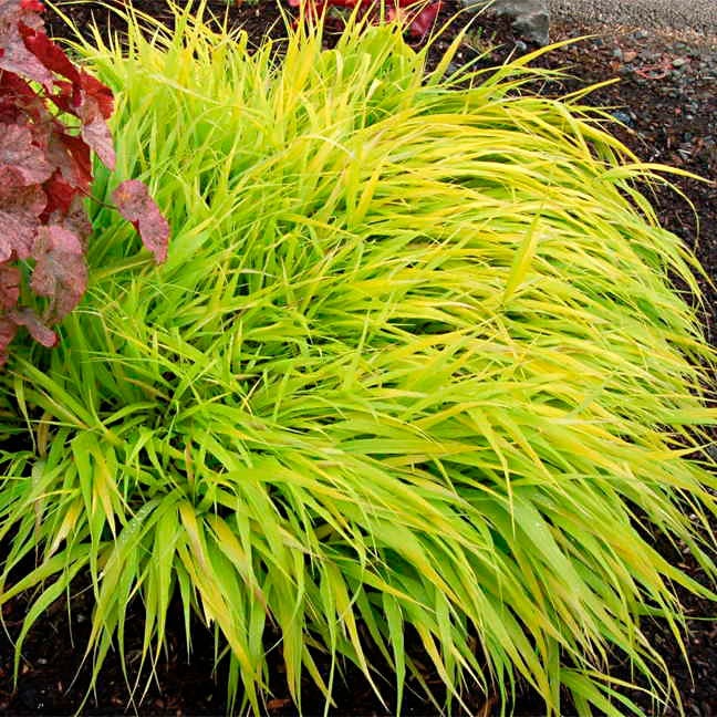 Golden Hakone Grass is a representative of the "golden-leaf" ornamental grasses. This low-growing perennial grows 12-18 inches tall. Its slender, lanceolate leaves are a pure yellow-green color without any variegation or spots. Under sunlight, they resemble a vibrant, long-lasting "flowing gold." The color fades slightly during the summer heat, but the golden hue remains, creating a natural transition. Its soft, drooping leaves form a natural "cascade-like" shape, which is even more dramatic when draped from a height. This variety tolerates shade but avoids direct sunlight (which can burn its leaves). It is best planted in diffused light under trees, in the shade of buildings, or in corners of courtyards. It can also be placed in pots on windowsills or balconies (where shade is required).