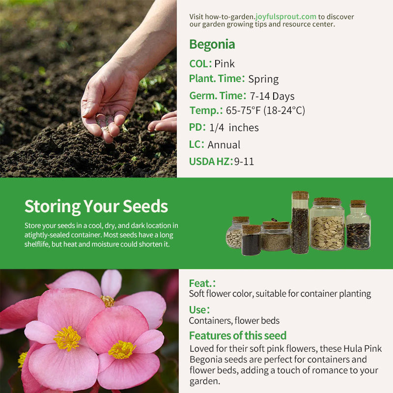 On a sunny morning, as you walk into your garden, Hula Pink Begonias appear like a graceful dancer, their soft pink blossoms swaying gently in the breeze. Each blossom is like a summer breeze, bringing a touch of coolness and joy. Planting these begonia seeds will allow you to experience the joy of connecting with nature. They are adaptable and thrive in full sunlight, adding a touch of vibrant color to your flower beds. When they bloom, the entire garden seems to illuminate and come alive. Hula Pink Begonias not only add a touch of romance to your garden, but also offer a sense of tranquility and beauty amidst your busy lives. Each flower is a love and celebration of life, waiting to be cared for with your care.