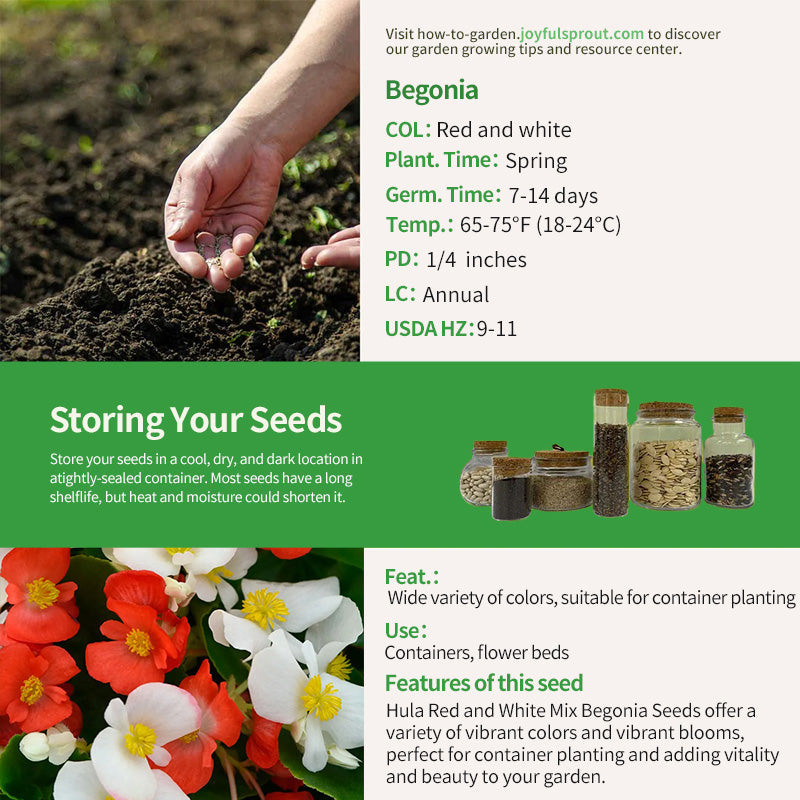 On a sunny day, Hula Red and White Mix Begonia Seeds present a vibrant display of color, their red and white blossoms blending beautifully to celebrate the beauty of life. Each flower exudes an enchanting fragrance, attracting bees and butterflies. Planting these begonia seeds will allow you to experience the joy of connecting with nature. They are adaptable and can grow in a variety of soils, making them the stars of your flower beds. Imagine strolling through your garden, surrounded by vibrant flowers, a feast of color. Hula Red and White Mix Begonia Seeds will not only add vitality to your garden but also provide a sense of peace and beauty amidst your busy lives.