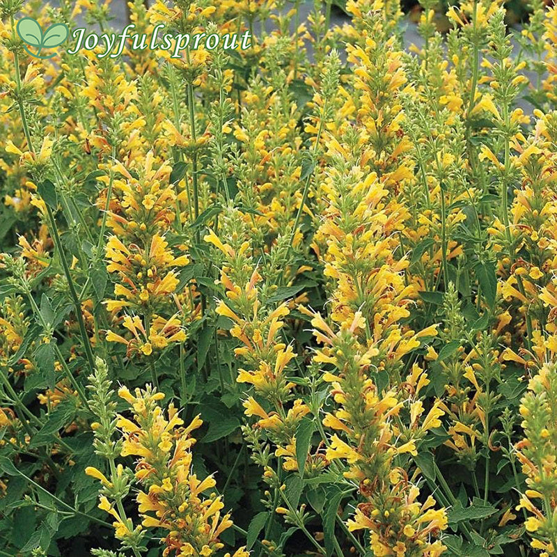 This hummingbird mint variety, designed for smaller spaces, grows in clusters of bright yellow flowers, resembling strings of miniature lanterns. It blooms continuously from late spring to fall. The plant stands low (only 12-18 inches tall), has a rounded, compact shape, and features small, emerald green leaves that release a refreshing aroma when rubbed, purifying the surrounding air. Its drought tolerance makes it easy to care for, allowing it to thrive without frequent watering. Its nectar-rich flower spikes are a favorite of hummingbirds, and you can often see them flying through the flowers. It's suitable for window sills, rock gardens, or borders, brightening up small spaces with bright color and ecological vitality.