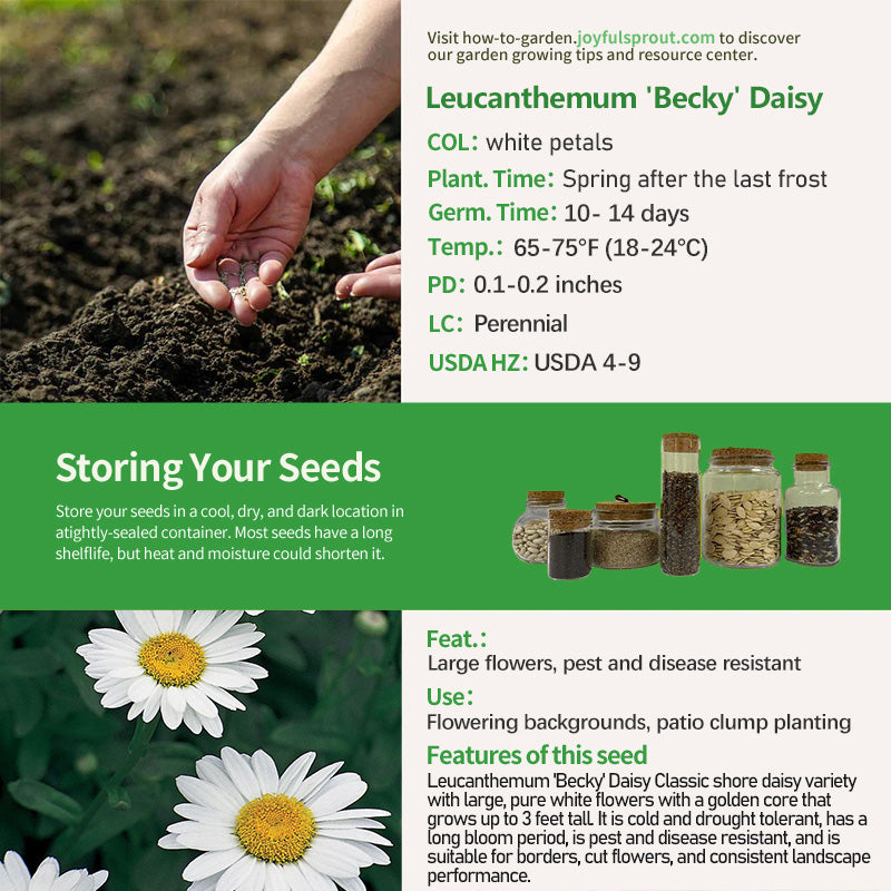 Leucanthemum 'Becky' Daisy is a well-regarded classic among the shoreline chrysanthemums, known for its robust growth and consistent ornamental performance. Flowers can reach 4-5 inches in diameter, with pure white ligulate petals spreading flat around a bright golden-yellow core in an elegant form. Plants are tall and upright, reaching 30-36 inches in height, with long, green foliage and a sparse, uncluttered habit. Its core strength is its adaptability: it is cold hardy to USDA zones 4-9 and can be over-wintered in the open; drought tolerant and pest resistant, blooming in hot summer temperatures or mild drought conditions, and flowering from early summer through late fall, with a long single bloom cycle.
