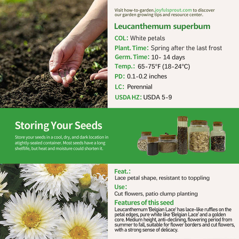 Leucanthemum'Belgian Lace' is the "delicate representative"of Hamakusa, with irregular lace-like folds on the edge of the petals, just like hand-stitched "Belgian lace", and pure white petals with a bright golden yellow core, elegant and Elegant and delicate. Plants are 24-30 inches tall, with tough, fall-resistant stalks and long, green leaves that are sparsely packed. The long, single bloom cycle lasts from summer to late fall, and the distinctive lace petal shape enhances bouquets when cut for fresh flowers. It is suitable for planting in the middle of a flower border to create an elegant atmosphere.