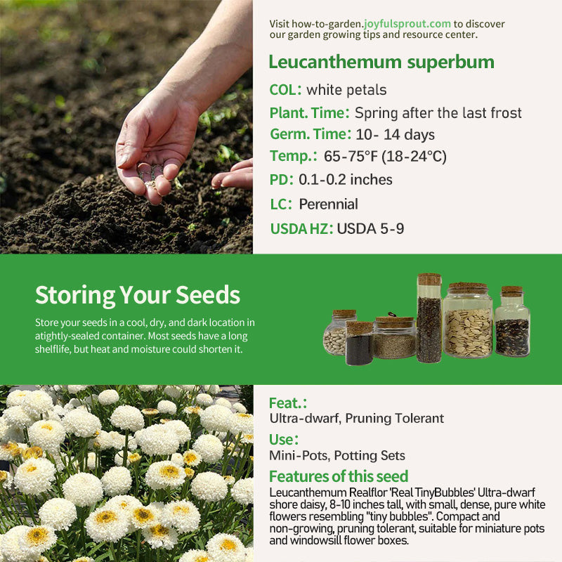 Leucanthemum Realflor 'Real TinyBubbles' is the "miniature representative"of Hamamelis,featuring "ultra-dwarf, small and beautiful".The plants stand only 8-10 inches tall, are compact to the point of being virtually ungrown, and have tiny, bright green leaves that don't obscure the flowers at all. Flowers about 2 inches in diameter, pure white petals are short and delicate, around a small yellow core, when open intensively like a string of floating "small bubbles", fresh and healing. Its maintenance threshold is extremely low, resistant to pruning, even if accidentally cut short can quickly re-flowering; cold hardiness suitable for USDA zones 5-9, balcony overwintering without pressure; to the soil and water requirements are relaxed, potted plants only need to be watered regularly.