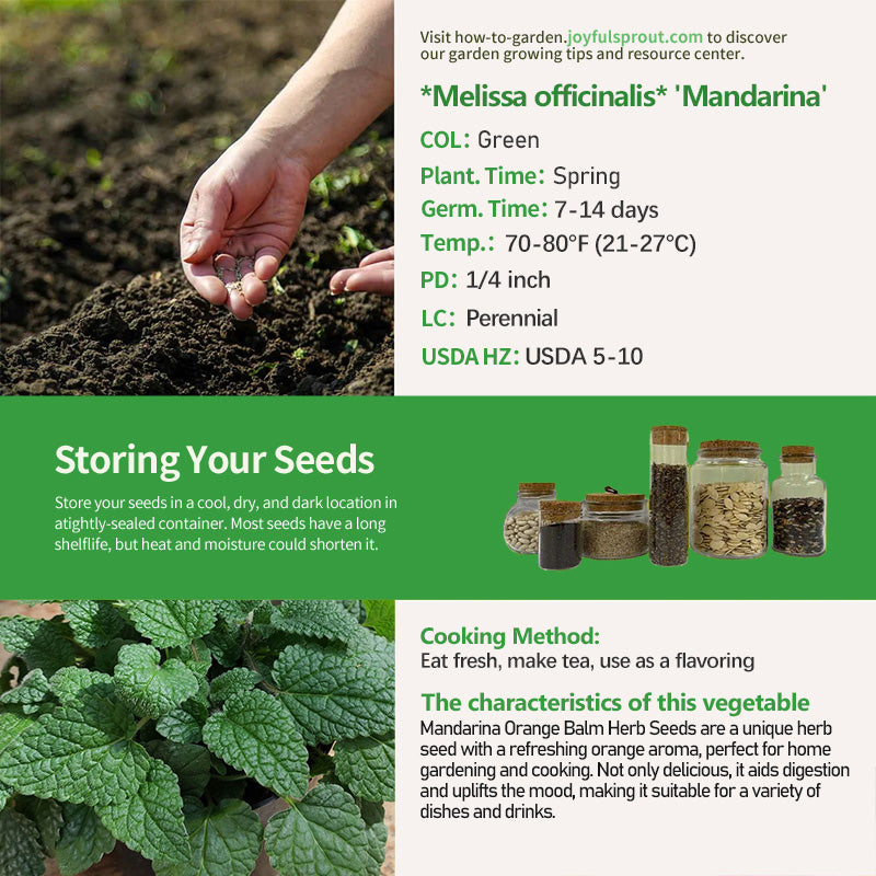 In a sunny garden, Mandarina Orange Balm Herb Seeds quietly grow, releasing their captivating orange fragrance. This herb is not only delightful but also rich in antioxidants and Vitamin C, helping to boost immunity. Imagine picking fresh orange herbs on a hot summer afternoon and adding them to iced tea or a salad, instantly adding a refreshing touch to your drink. Whether used as a culinary seasoning or to brew fragrant tea, it offers a dual enjoyment of health and flavor, enriching your life.