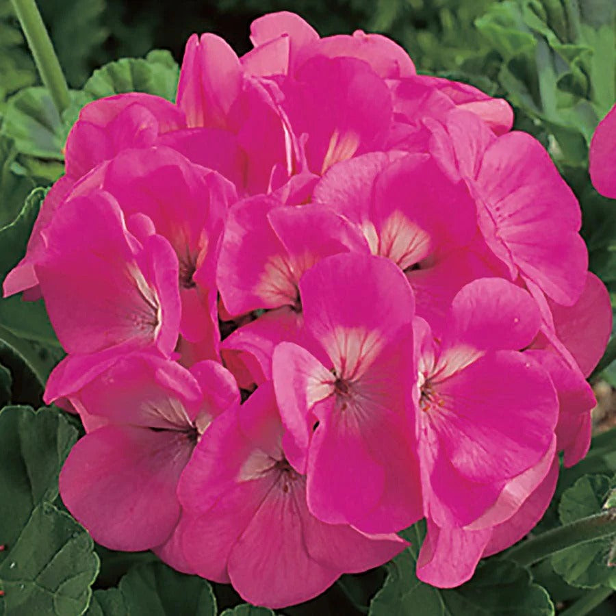 Maverick Pink hybrid geranium seeds produce early-flowering plants with multiple stems and large, deep pink flowers up to 12-16 cm in diameter with a light-colored veined center. Mature plants reach a compact height of 35-40 cm. This heat- and drought-tolerant variety is suitable for large-scale planting and is also popular among home gardeners. It can be grown in pots or in the ground, providing a long-lasting touch of color.