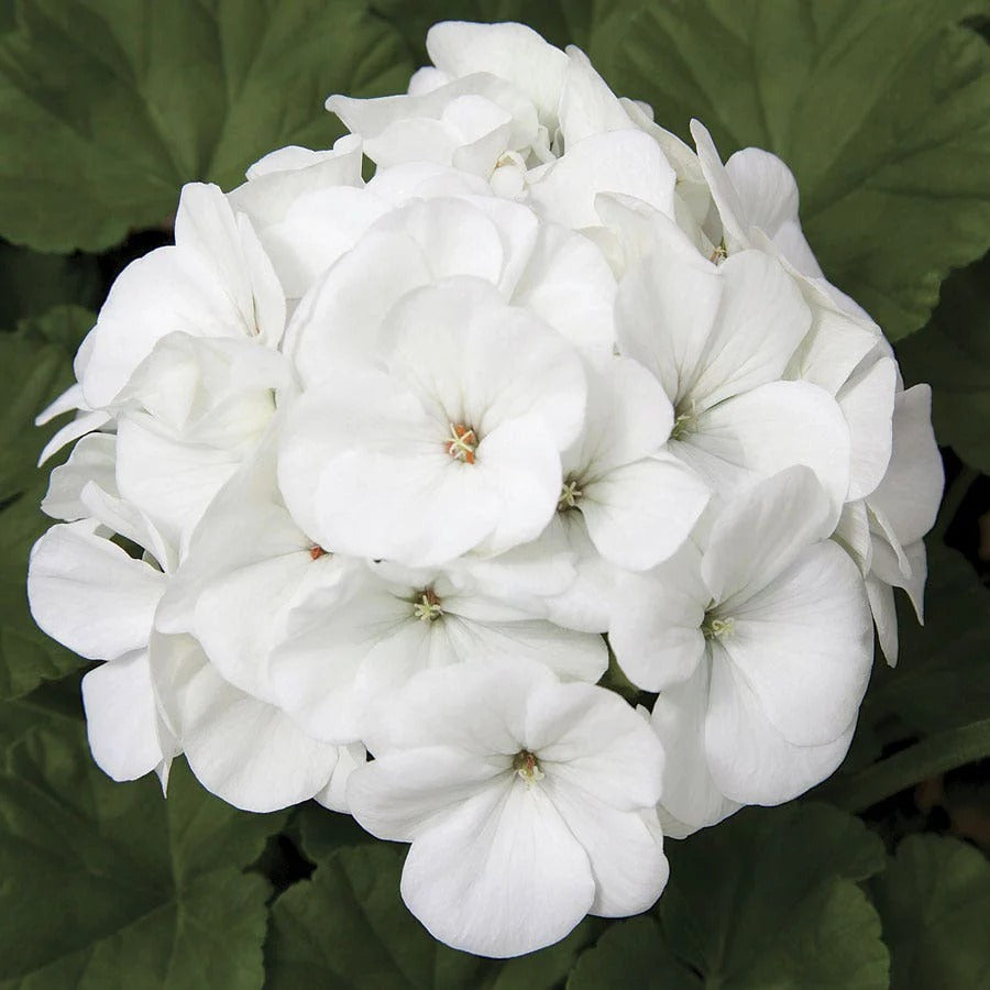 Plants grown from Maverick White hybrid geranium seeds are classic garden beauties. They grow vigorously and quickly fill larger pots. Their large, high-quality, pure white flowers offer high retail appeal. This heat- and drought-tolerant variety is pollinator-friendly, blooming in mid- to late-spring and summer without vernalization. It prefers full sun. Reaching a height of 14-16 inches and a width of 12-14 inches, it is suitable for 1-quart to 2-gallon pots.