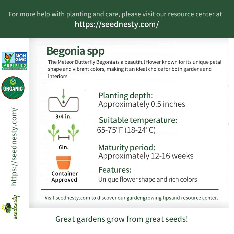 On a sunny morning, the Meteor Butterfly Begonia quietly blooms, its petals streaking across the night sky like shooting stars. The interweaving of unique shapes and colors seems to tell a story of beauty and hope. Each flower exudes a warm fragrance, attracting butterflies and bees, making it the star of the garden. They are not only a visual feast, but also a gift from nature, allowing everyone who enters the garden to experience the vitality and beauty of life. Whether as the centerpiece of a flower bed or in a vase indoors, the Meteor Butterfly Begonia will add vitality and charm to your space.