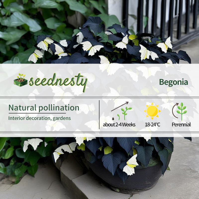 Like a pearl against the night sky, the contrast of Black and white wings is unforgettable. Its leaves sway gently in the breeze, dancing an elegant melody. Its presence adds a unique charm to any interior, inviting everyone to stop and admire. Friends often gather here to share stories, and this plant quietly bears witness to every joyful moment. More than just a decorative element, the Moonlight Butterfly Begonia-Black and white wings embodies a lifestyle, symbolizing the pursuit of a better life.