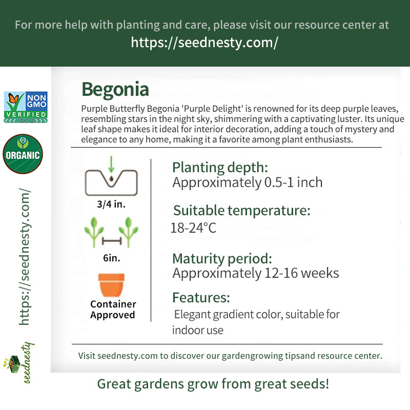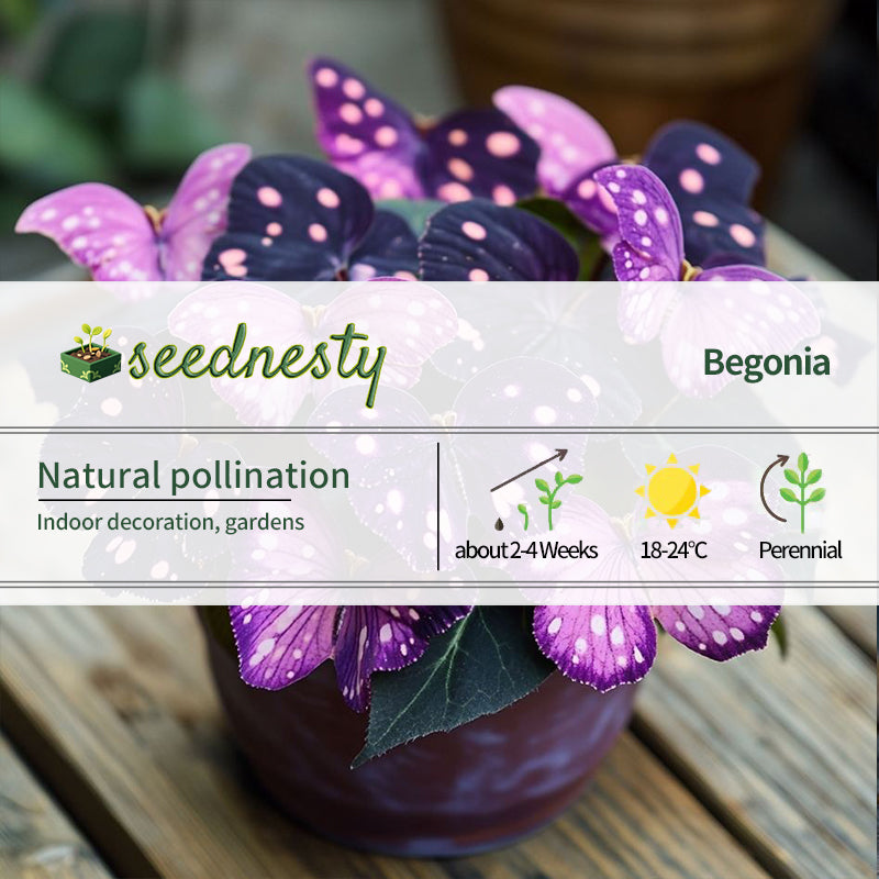 On a mysterious night, Moonlight Butterfly Begonia - Dark purple and light purple quietly bloomed, its deep purple leaves shimmering with a captivating luster like stars in the night sky. Its unique shape and color evoke a sense of elegance and mystery, as if revealing the secrets of nature. It's always a favorite plant at gatherings, captivating everyone's attention. Purple Butterfly Begonia not only adorns homes but also brings endless inspiration and creativity. It's a treasure in every plant lover's heart, symbolizing a love and pursuit of life.