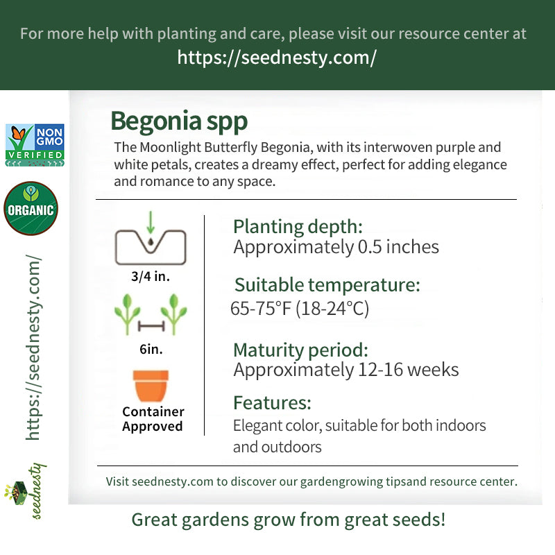 On a tranquil evening, as moonlight streams across the garden, the purple and white petals of the Moonlight Butterfly Begonia shimmer captivatingly in the soft glow. Like stars in the night sky, they gently sway, whispering a romantic story. Each flower exudes a delicate fragrance, attracting nocturnal insects and becoming an indispensable part of the garden. These flowers not only adorn the flowerbed but also add a touch of elegance and fantasy to every corner, allowing visitors to experience the magic and beauty of nature.