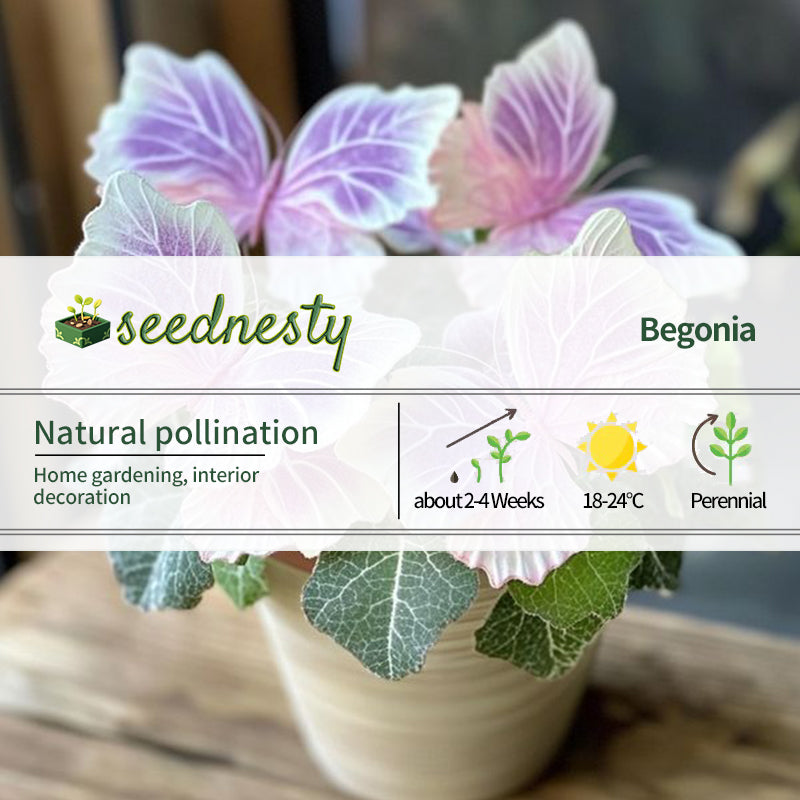 On a starlit night, Butterfly Begonia 'Purple and White' streaks across the sky like a shooting star, bringing endless surprises. Its leaves shimmer with multicolored light, seemingly telling moving stories. In a gentle breeze, the leaves sway gently, as if communicating with the world around them. Its unique pattern and color evoke a sense of vitality, making it a striking addition to any interior. Whether placed on a desk or by a window, Begonia 'Meteor Butterfly' adds an artistic touch to any space, filling every corner with life and inspiration.