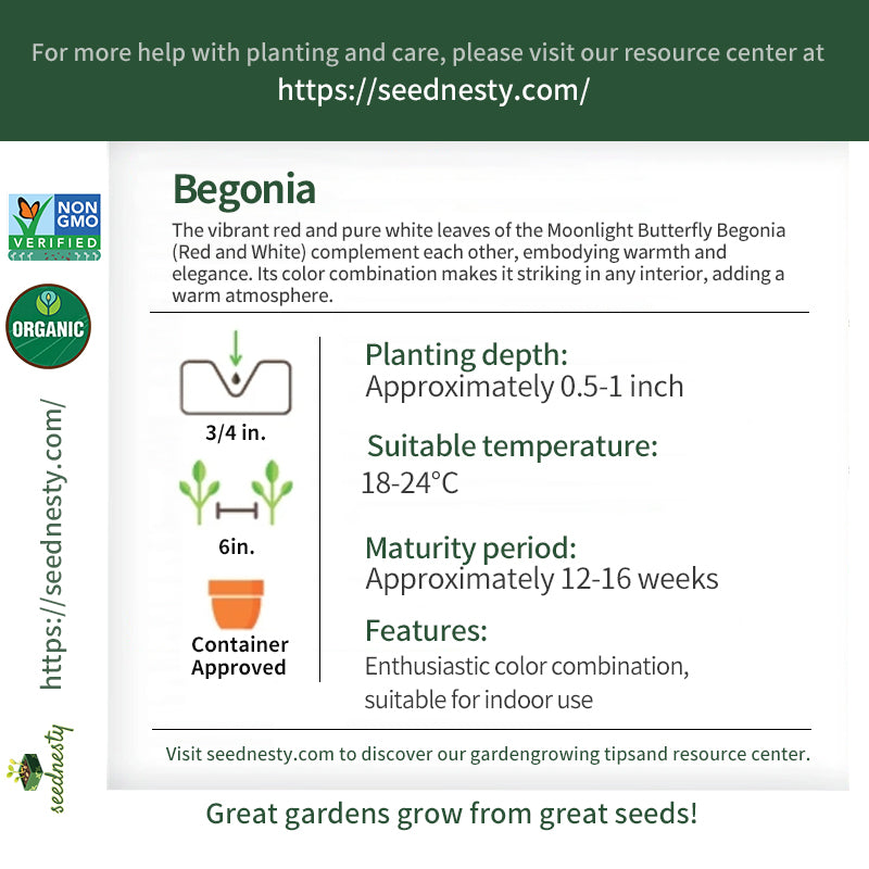 The Moonlight Butterfly Begonia (Red and White Twins) is a feast of color, its vibrant red and pure white leaves complementing each other, showcasing unparalleled warmth and elegance. Whenever sunlight shines, its leaves shimmer in the light and shadow, seemingly telling the story of spring. This plant is not only beautiful but also a symbol of life, representing love and warmth. When friends gather together, they are captivated by its vibrant colors and gather around it to share stories. The Moonlight Butterfly Begonia (Red and White Twins) fills every corner with vitality and warmth, becoming a shining pearl in home decor.