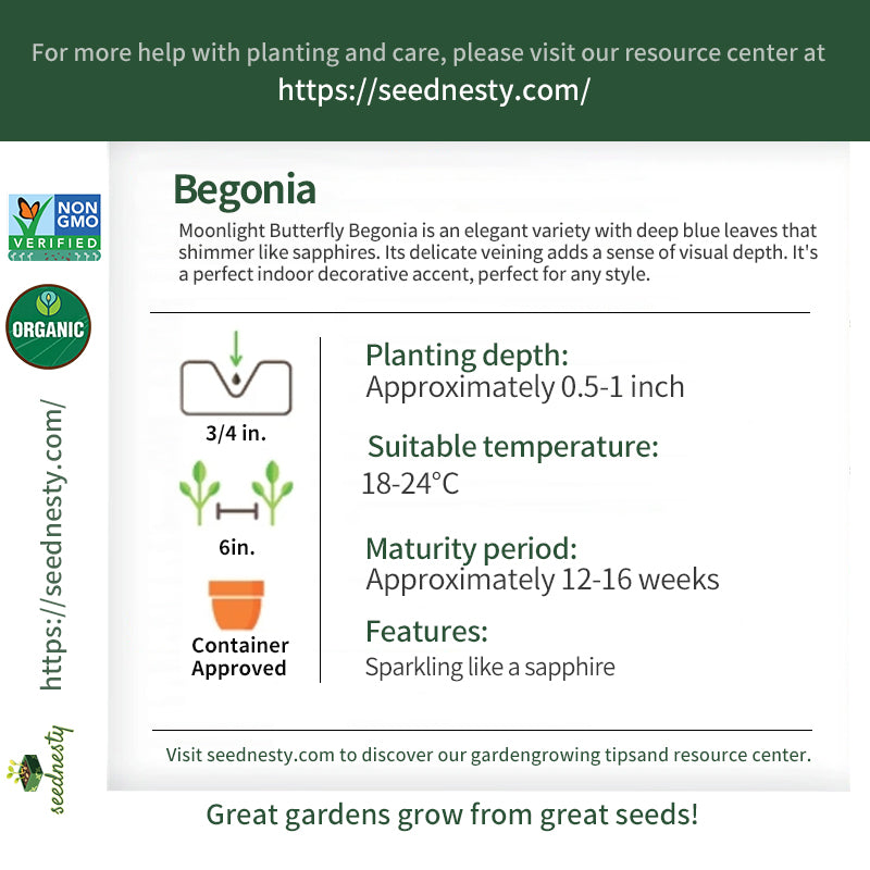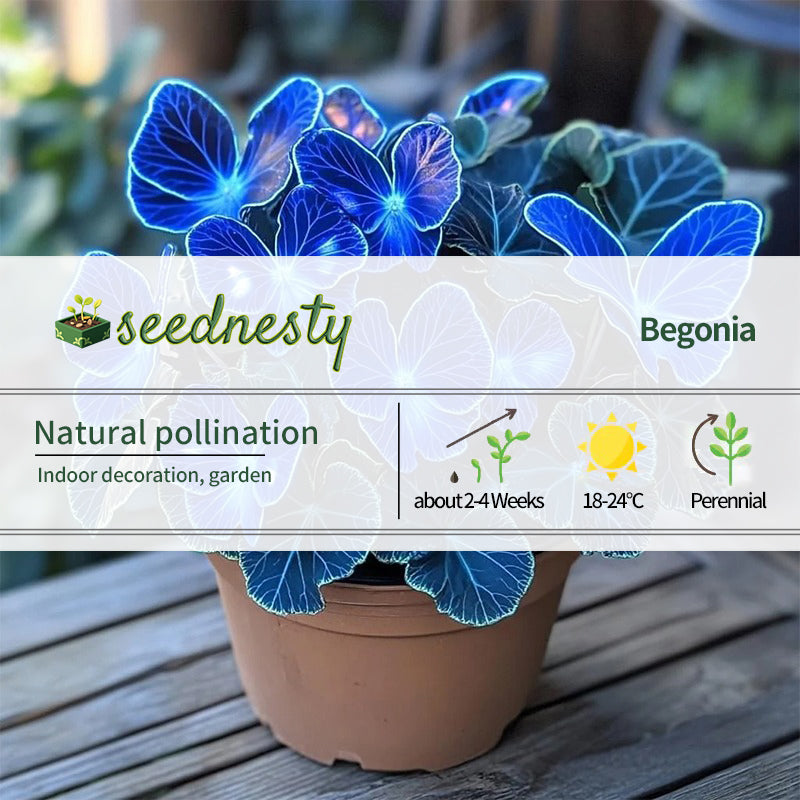 In a quiet corner, Moonlight Butterfly Begonia quietly grows, its deep blue color evoking the vastness of the starry sky. Gently swaying in the breeze, its leaves whisper the secrets and beauty of nature. Its presence adds a touch of elegance and tranquility to any room, a reminder that there are always beautiful things in life worth discovering and cherishing. As night falls, its blue leaves shimmer in the light, as if telling an ancient legend, captivating one with its mystique.