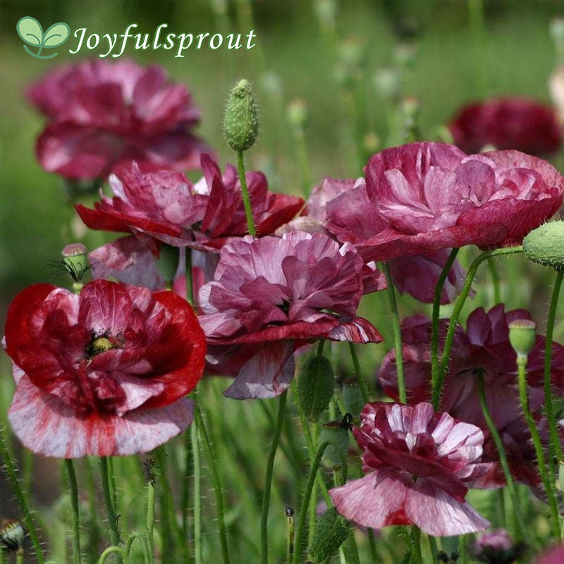 Plants grown from "Pandora" poppy seeds have red flowers with a fascinating variety of colors. The petals add a touch of mystery and elegance. The plant stands 60 cm tall and is relatively compact. Its leaves are rosette-shaped and deeply divided. The flower stems are slender, with a single flower at the top. The seed pods also have a decorative effect. Whether planted in large areas to create a sea of flowers, used to decorate flower beds and borders, or as short-term cut flowers, they offer unique ornamental value.