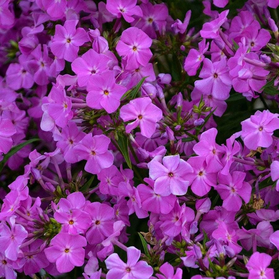 Phlox 'Opening Act Romance' is a uniquely attractive early-flowering perennial phlox. Reaching a height of 20-22 inches, it forms a compact, domed plant, reaching a width of 36 inches at maturity. Its dark green, lanceolate leaves are smooth and have a slightly curled edge, adding a touch of movement. Blooming 2-3 weeks earlier than traditional tall phlox varieties, it begins in early summer with a large, panicle-shaped inflorescence at the top. This cluster of small purple flowers, each with a striking white halo in the center, creates a striking contrast. The flowers, approximately 1-1.2 inches in diameter, have a delicate fragrance that attracts pollinators such as butterflies, bees, and hummingbirds.