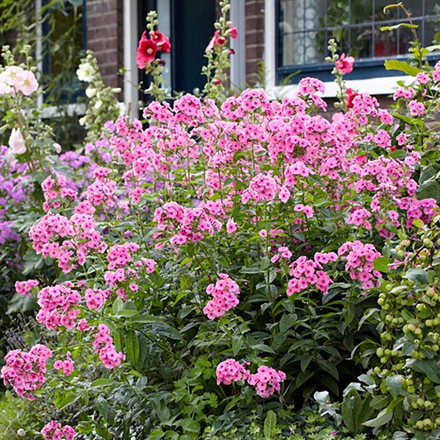 Phlox 'Starburst' is a very vigorous perennial phlox. Growing between 24 and 48 inches tall, its stems are upright and sturdy, providing sturdy support for its profuse blooms. Its dark green, narrow, lanceolate leaves are tough and alternate along the stems. The leaves are well-veined and shimmer in the sun. Starting in midsummer, large clusters of closely arranged, cone-shaped flowers emerge from the top of the plant. The flowers are a vibrant pink, each about 1 to 1.5 inches in diameter, forming clusters up to 4 to 5 inches in diameter. The flowers are not only vibrant in color but also have a captivating sweet fragrance that wafts through the breeze, attracting a variety of pollinators, including hummingbirds and butterflies.