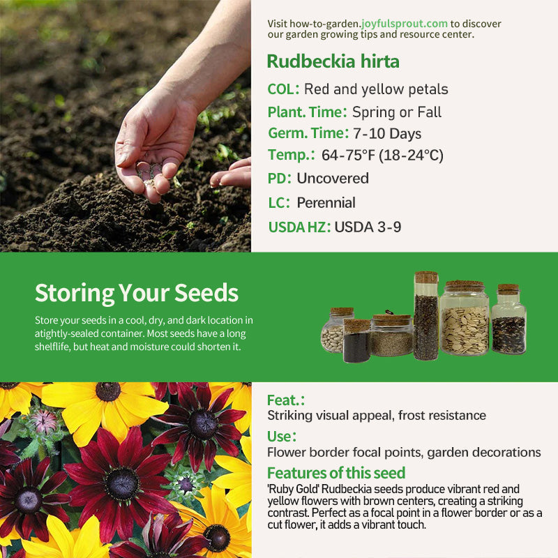 'Rudbeckia' is a star among rudbeckias. Plants grown from seeds feature vibrant red and yellow petals set against a dark brown center, creating a striking color contrast and creating a strong visual impact. The plants grow approximately 26-32 inches tall, with sturdy stems and long, ovate, dark green leaves. Their shape is regular yet wild. It is highly adaptable, drought-tolerant, and tolerates light frost. Its blooms last from summer to fall, making it suitable for centerpieces in flower borders or as a focal point in a garden, complemented by green foliage plants.