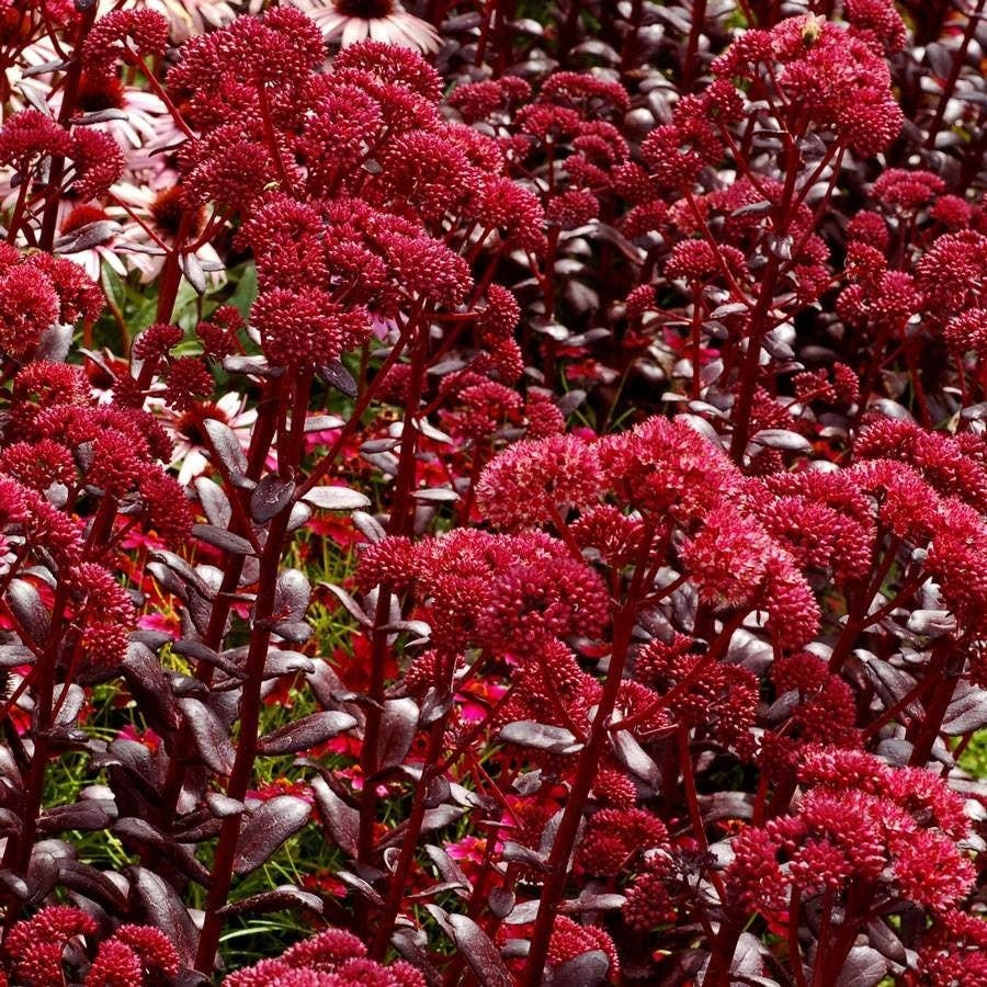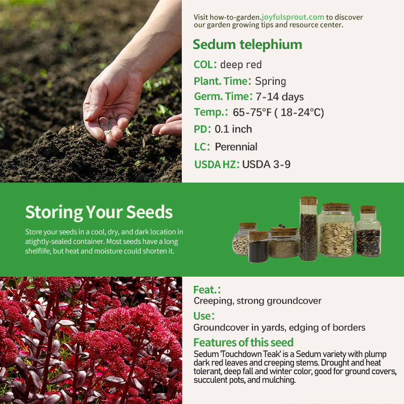 Sedum 'Touchdown Teak' produces plump, full leaves with a distinctive deep red color, the more light and the greater the temperature difference, the deeper the leaf color. The plant has creeping stalks and strong branching ability, which can quickly cover the ground and form a dense crimson groundcover. Outstanding drought and heat tolerance with no wilting in summer heat and more ornamental foliage color in fall and winter. Only 3-5 inches in height, suitable for planting on patio groundcover, edging borders, or hanging in pots to create hanging landscapes, with low soil requirements, can be grown in ordinary drained soil, easy to care for, suitable for novices or large-scale landscaping.