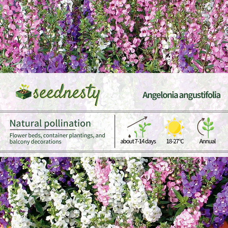In a sunny garden, Serena Hybrid Angelflowers are like a flock of cheerful little fairies, displaying their vibrant colors. Each blossom blooms in the sun, vibrant shades of purple, pink, and white, creating a dazzling sea of blooms. Their robust growth, drought tolerance, and ease of care make them ideal for outdoor spaces. Their petals sway gently in the breeze, releasing a delicate fragrance that attracts bees and butterflies. Whether the centerpiece of a flowerbed or in a container on a balcony, Serena Hybrid Angelflowers bring life and vitality to any space, allowing visitors to experience the charm of nature while admiring them.