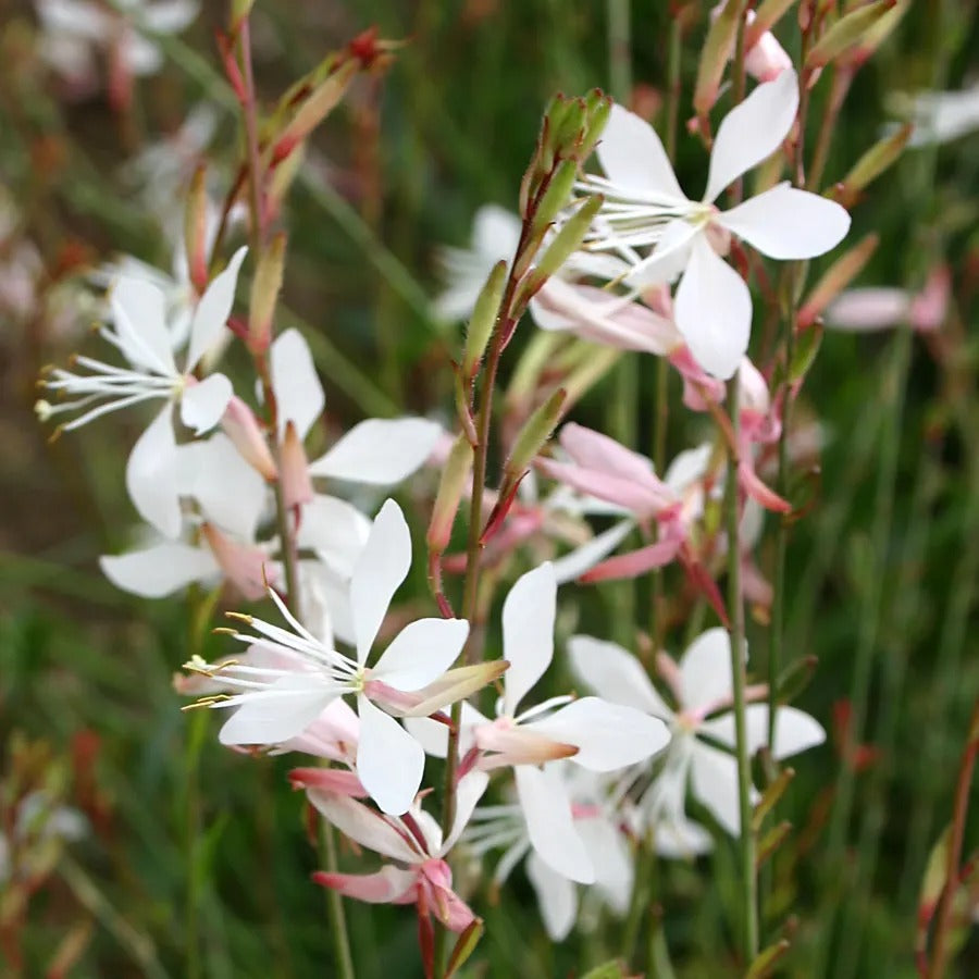 This Fleuroselect Gold Award-winning perennial shrub grows 24-30 inches tall, with a compact, rounded plant covered in numerous 1.5-inch, star-shaped flowers. White petals with a light pink halo create a shimmering, star-like bloom. It can be grown as a perennial in USDA zones 5-6 and as an annual elsewhere. Germination takes 21-35 days after sowing, requiring no covering, provided the temperature is maintained at 70°F (21°C). It is extremely tolerant of heat, humidity, and drought, performing best in full sun. It thrives with minimal watering in summer. The flowers shed naturally, requiring no pruning. It is deer-resistant and suitable for containers, front borders, or mass plantings, blooming from late spring until frost.