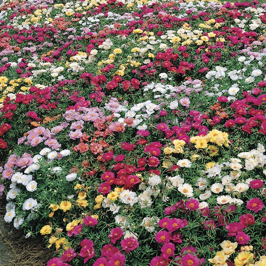 Plants grown from "Sundial Hybrid" purslane seeds are a true "colorful spirit" for hot, dry environments. While the plant grows low, only 6 inches tall, it spreads 14 to 16 inches in all directions. Its large, 2-inch-diameter flowers are perfectly double and come in a range of vibrant hues, resembling miniature shrub roses blooming above fleshy leaves. Its early blooms withstand the intense heat and drought of summer, and its flowers remain open longer during the day than other purslane varieties. Whether used to create a vibrant carpet in a flower bed or as a cascade of colorful blooms in a container, it creates a unique tropical charm and adds endless appeal to any garden.