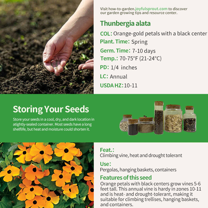 Susie Orange Black-Eyed Susan Vine Thunbergia Seeds