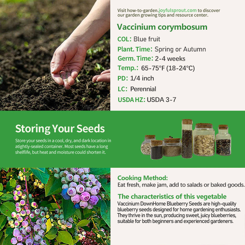 By growing Vaccinium DownHome Blueberry Seeds, you'll experience the health and joy that blueberries bring. These seeds flourish in sunny environments, and over time, you'll watch them grow from tiny sprouts into a bountiful blueberry bush. Every time you harvest those plump blueberries, you're not only enjoying delicious fruit, but also providing yourself and your family with essential nutrients. Blueberries are rich in antioxidants, vitamin C, and dietary fiber, which help boost immunity, promote heart health, and improve digestion. Imagine adding fresh blueberries to your breakfast oatmeal, making delicious jam, or simply enjoying them on their own—bringing color and health to your life. Growing these blueberry seeds allows you to connect with nature and reap not only delicious fruit but also endless joy and health.