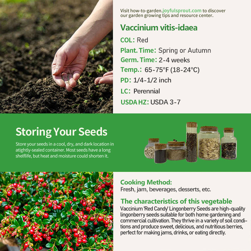 Vaccinium 'Red Candy' Lingonberry Seeds are the perfect choice for your gardening dreams. This lingonberry is known for its vibrant red berries, which are not only beautiful but also rich in antioxidants, vitamin C, and dietary fiber. By growing these seeds, you'll reap not only delicious fruit but also a healthy lifestyle. Lingonberries are considered a "superfood" and are widely used in Nordic culture, often for treating colds and boosting immunity.Imagine picking fresh lingonberries in your own garden on a sunny summer day and enjoying their sweet and tart flavor. Whether used to make homemade jam or added to salads and desserts, 'Red Candy' berries will add color and flavor to your table. Furthermore, lingonberry is extremely easy to grow, highly adaptable, and thrives in a variety of climates, making it suitable for all gardening enthusiasts.