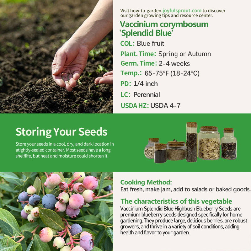 By planting Vaccinium Splendid Blue Highbush Blueberry Seeds, you'll experience nature's bounty and healthy flavors. This highbush blueberry variety is known for its high yield and hardiness, thriving in a wide range of climates. Imagine sowing these seeds in the warm spring and watching them grow into tall bushes, bearing plump, sweet blueberries over time. Each blueberry is rich in antioxidants, vitamin C, and dietary fiber, helping to boost immunity, promote heart health, and improve digestion. You can add fresh blueberries to breakfast oatmeal, make delicious jam, or enjoy them plain, adding a touch of natural sweetness to your life. Growing 'Splendid Blue' blueberries is not just about enjoying the harvest; it's about providing your family with a healthy, delicious lifestyle, making every meal vibrant and nutritious.